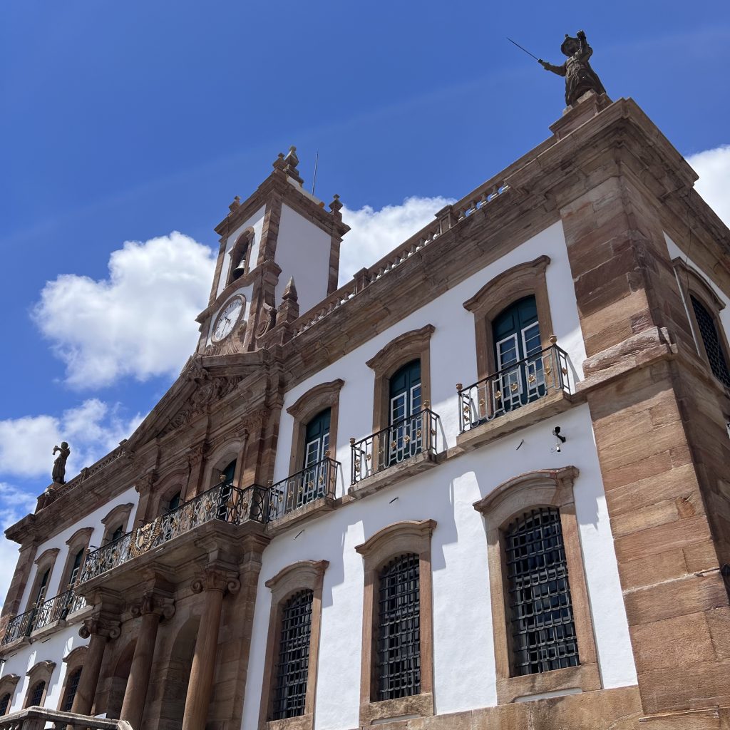 Do outro lado da praça, o Museu da Inconfidência, ícone de Ouro Preto, funciona em um prédio erguido entre 1785 e 1855, que já sediou a Casa de Câmara e Cadeia. Transformado em museu em 1944, completou 80 anos de funcionamento em 2024 e se mantém como um dos espaços culturais mais importantes de Minas Gerais.